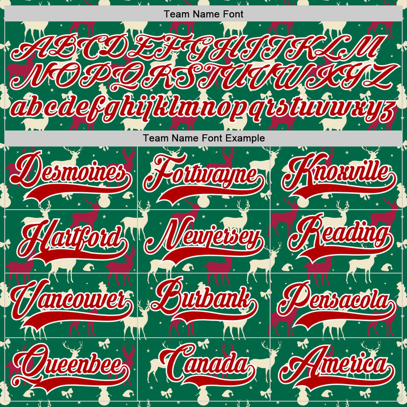 Custom Kelly Green Red-White 3D Christmas Reindeer Hockey Lace Neck Jersey
