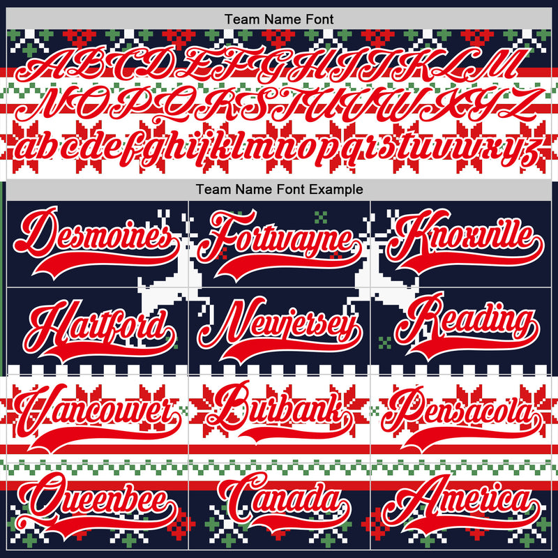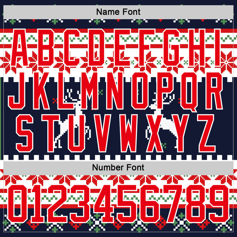 Custom Navy Fire Red-White 3D Christmas Ugly Sweater Hockey Lace Neck Jersey