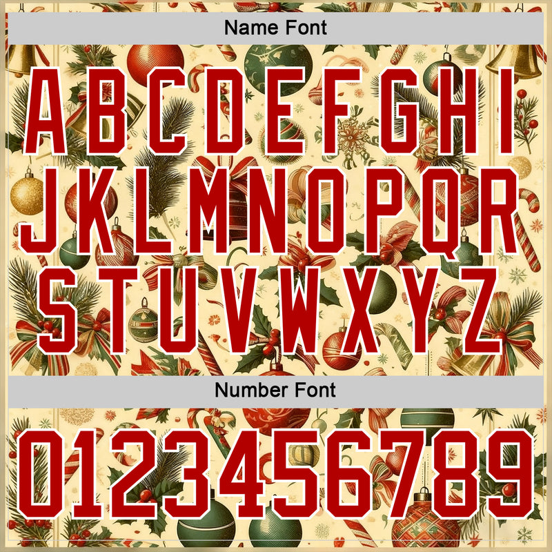 Custom Old Gold Fire Red-White 3D Christmas Hockey Lace Neck Jersey