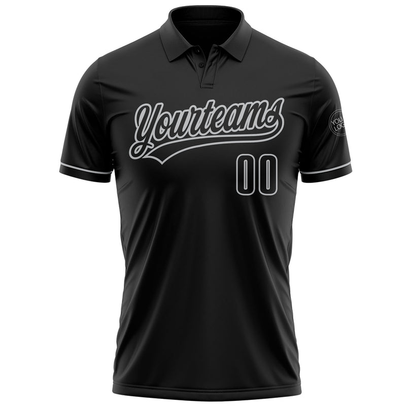 Custom Black Black-Gray Performance Vapor Golf Polo Shirt