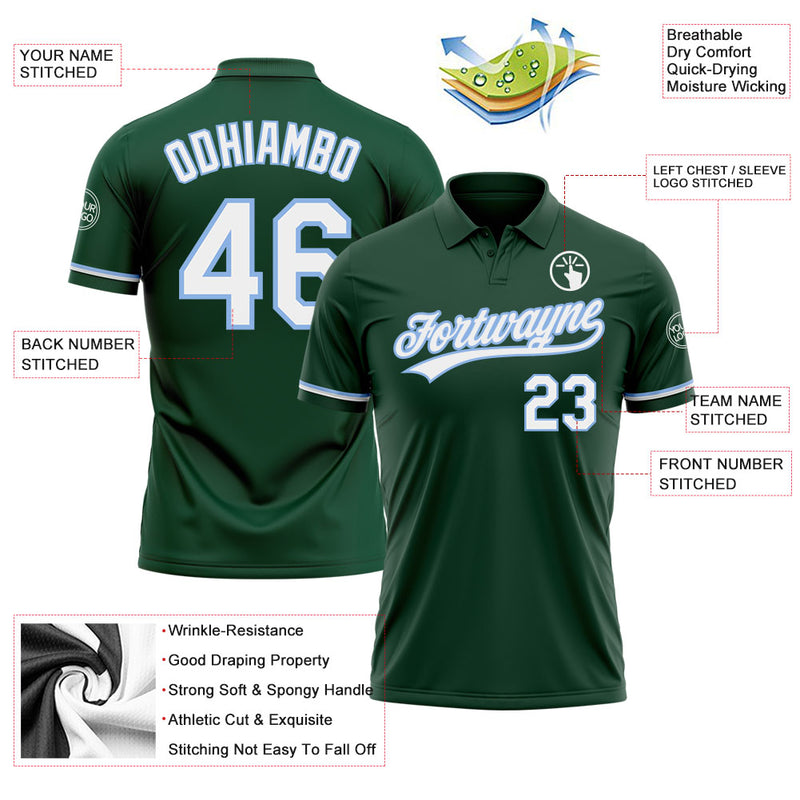 Custom Green White-Light Blue Performance Vapor Golf Polo Shirt