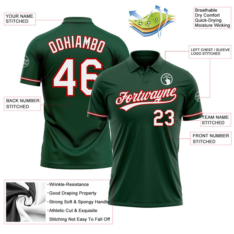 Custom Green White-Red Performance Vapor Golf Polo Shirt