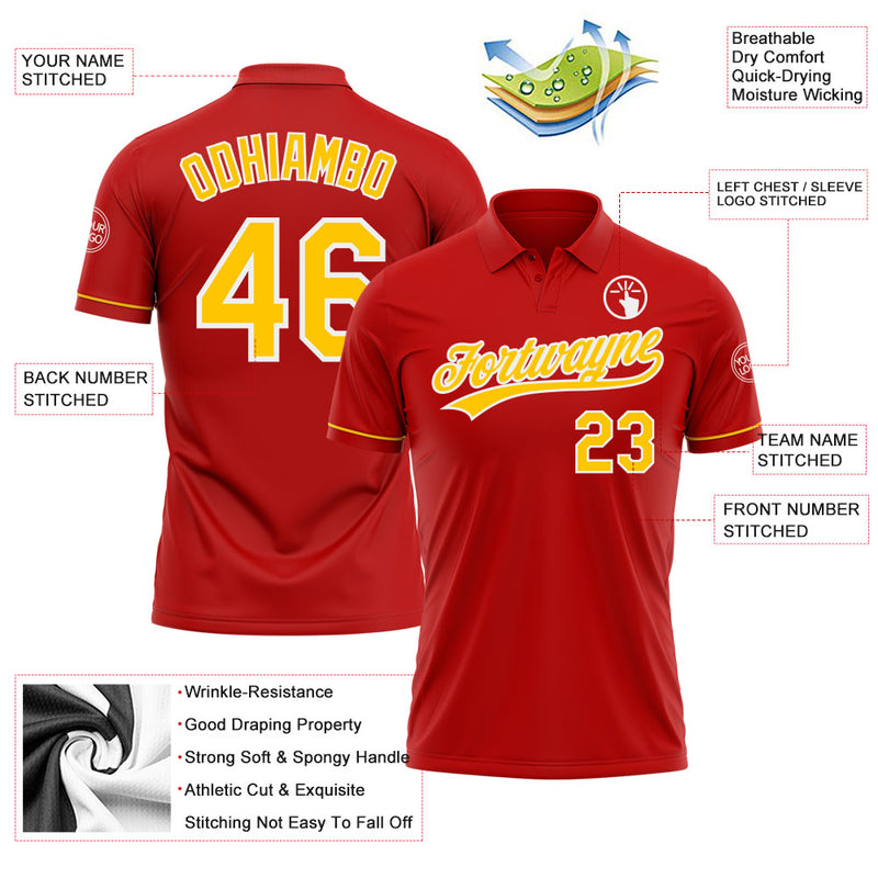 Custom Red Yellow-White Performance Vapor Golf Polo Shirt