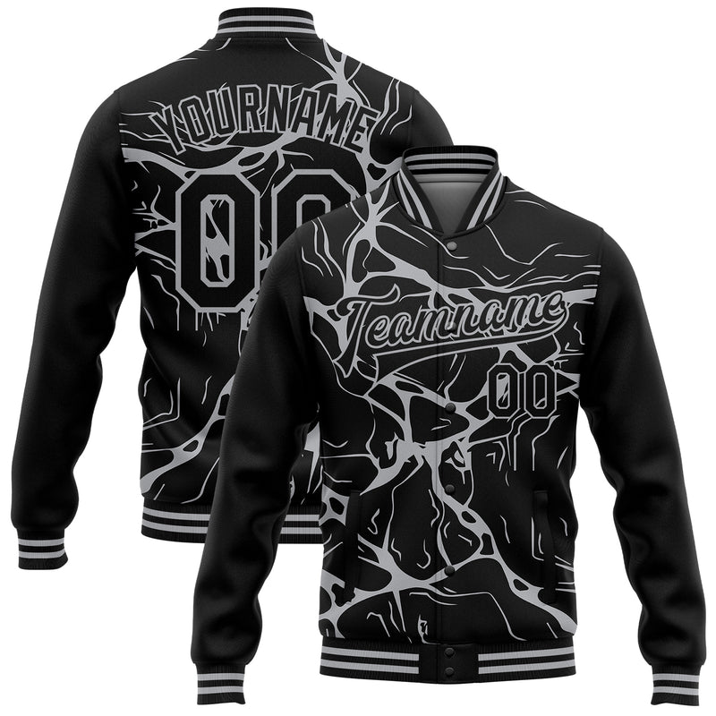 Custom Black Gray Abstract Network 3D Pattern Design Bomber Full-Snap Varsity Letterman Jacket