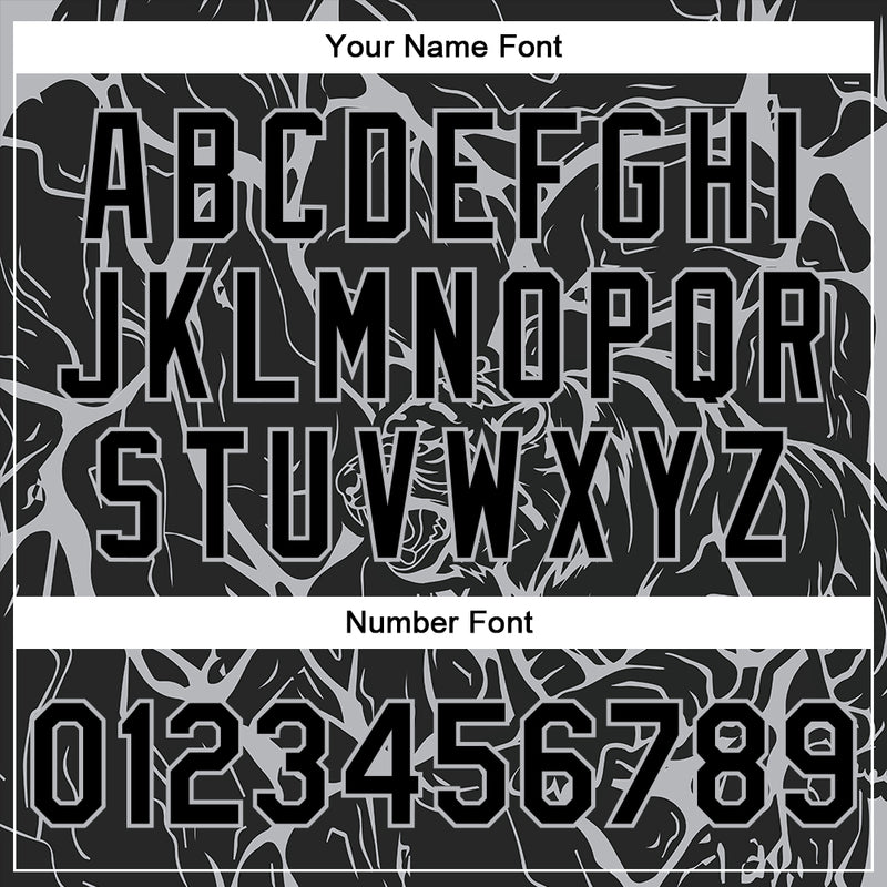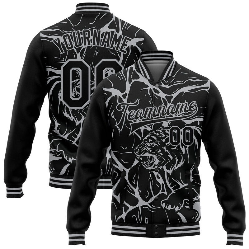 Custom Black Gray Abstract Network And Tiger 3D Pattern Design Bomber Full-Snap Varsity Letterman Jacket