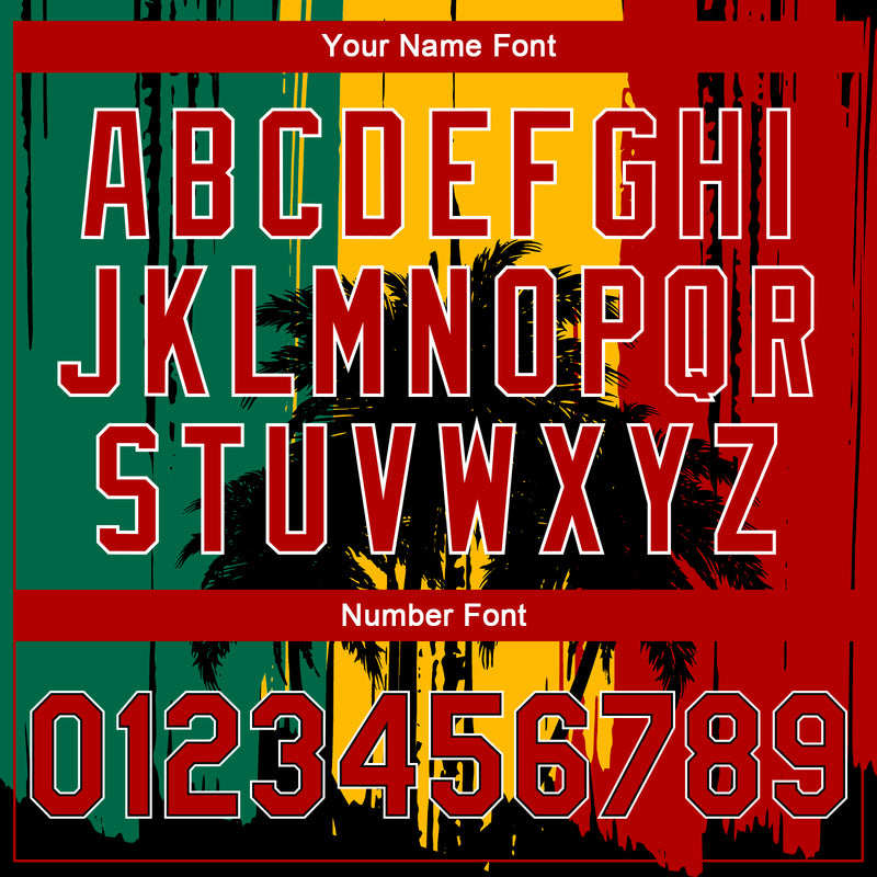 Custom Gold Red Black-Kelly Green Black History Month Hawaii Palm Trees 3D Bomber Full-Snap Varsity Letterman Jacket