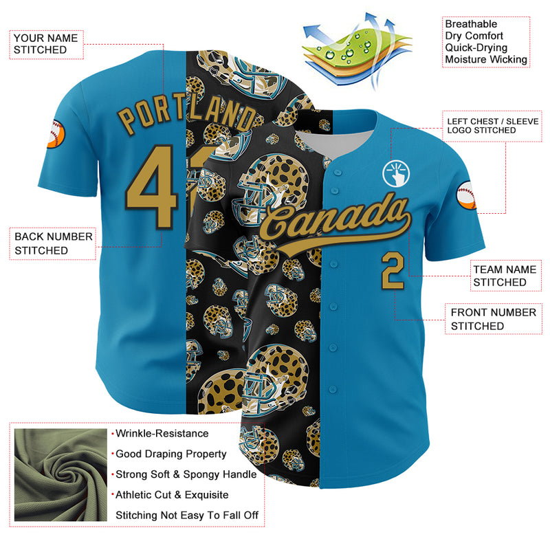 Custom Panther Blue Old Gold-Black 3D Pattern Design Football Jaguar Helmet Authentic Baseball Jersey