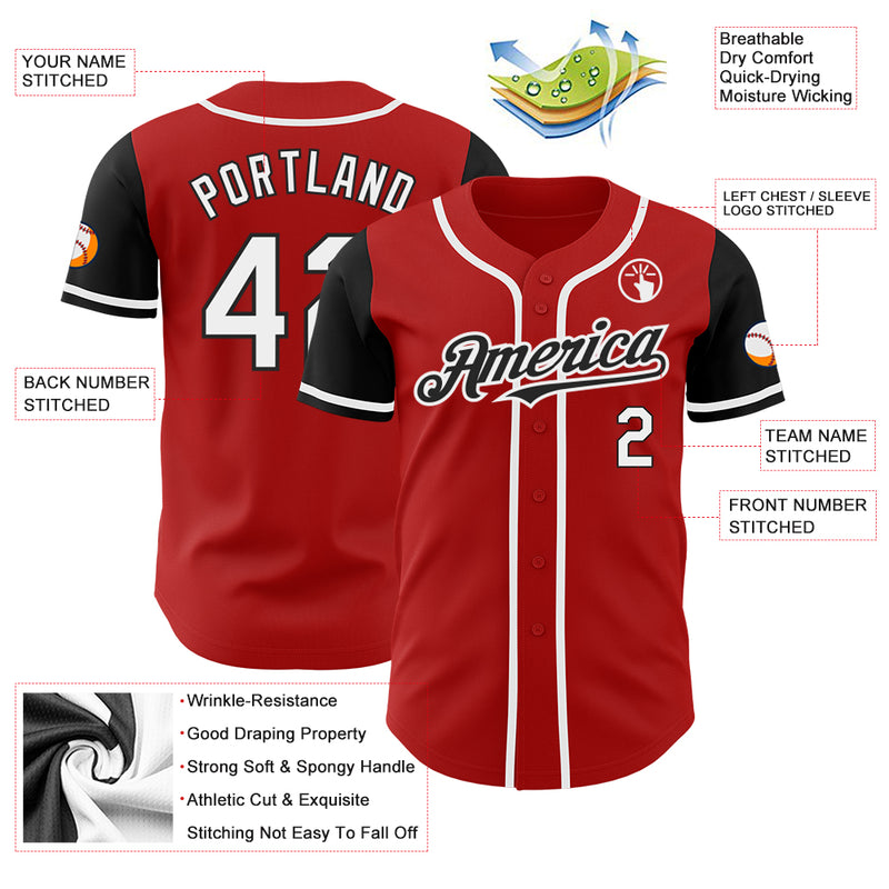 Custom Red White-Black Authentic Two Tone Baseball Jersey