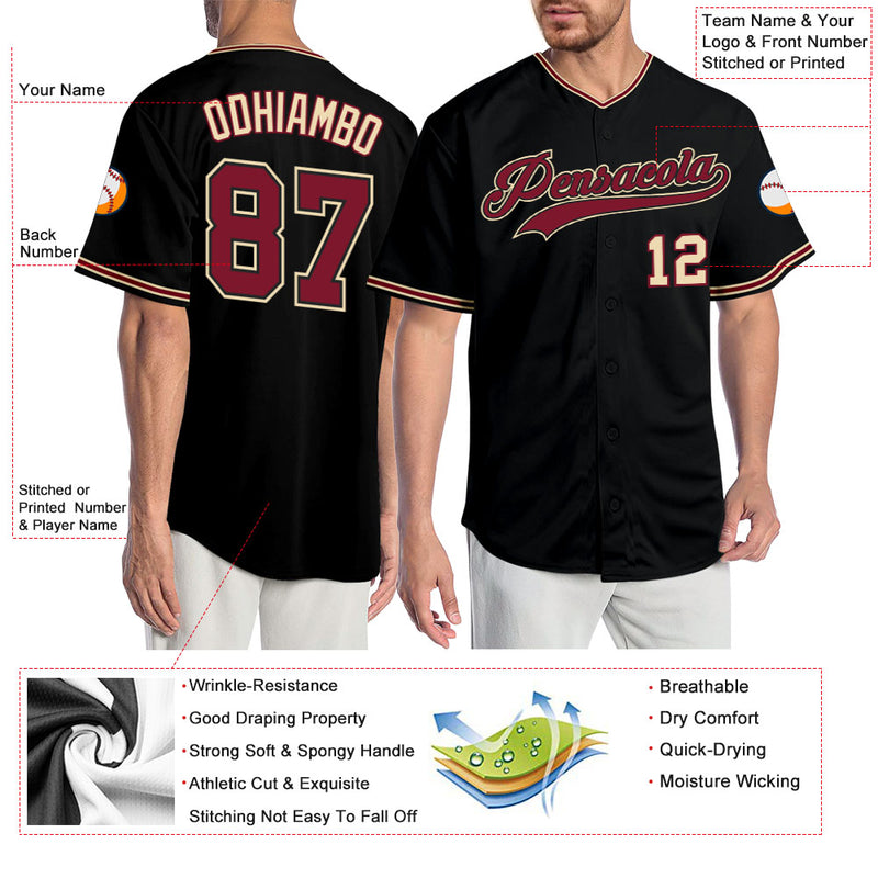 Custom Black Crimson-City Cream Authentic Baseball Jersey