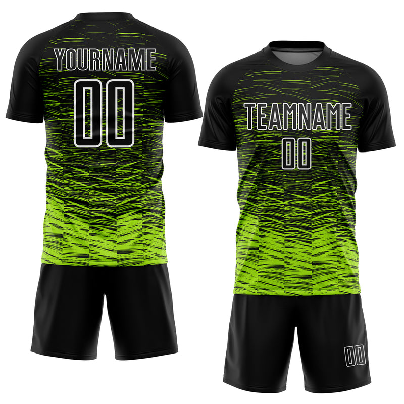 Custom Black Neon Green-White Line Sublimation Soccer Uniform Jersey