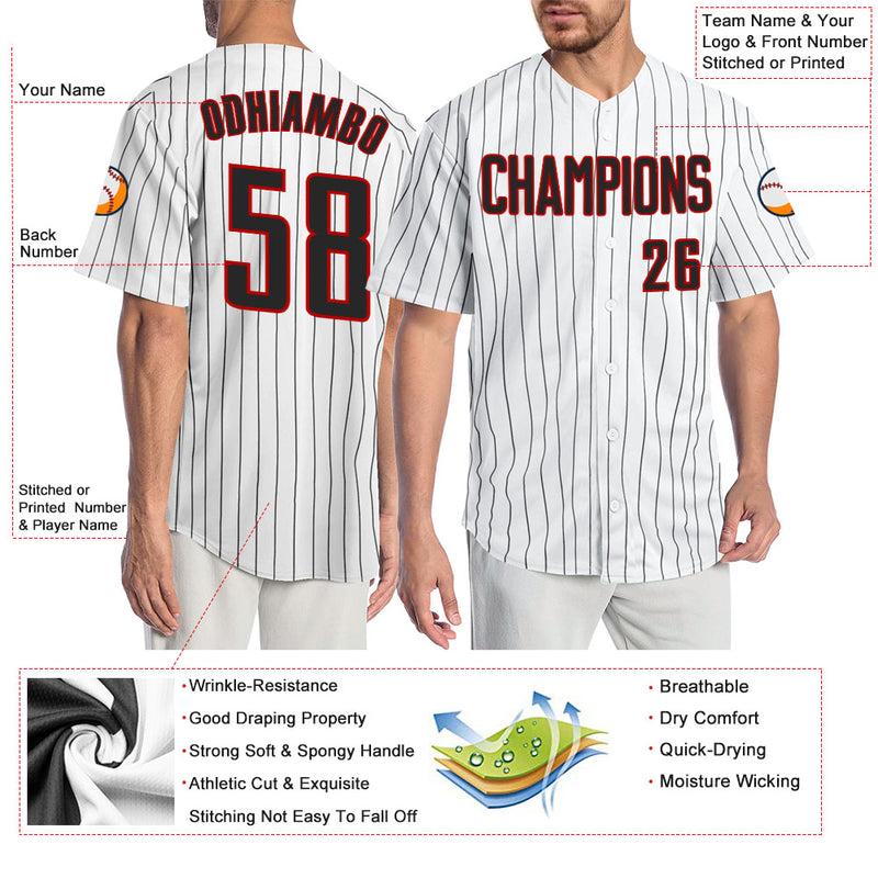 Custom White Black Pinstripe Black-Red Authentic Baseball Jersey