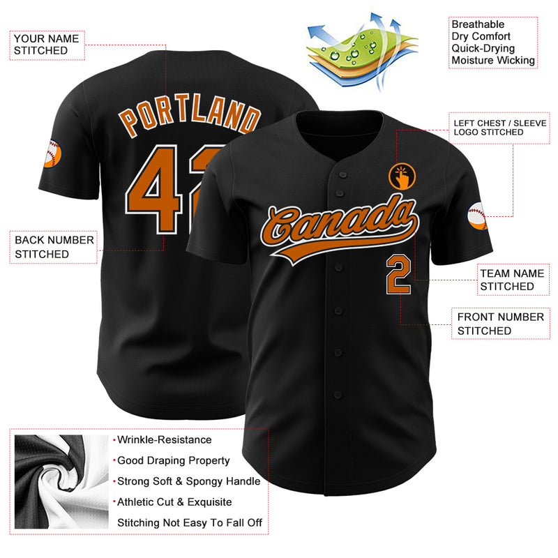 Custom Black Texas Orange-White Authentic Baseball Jersey