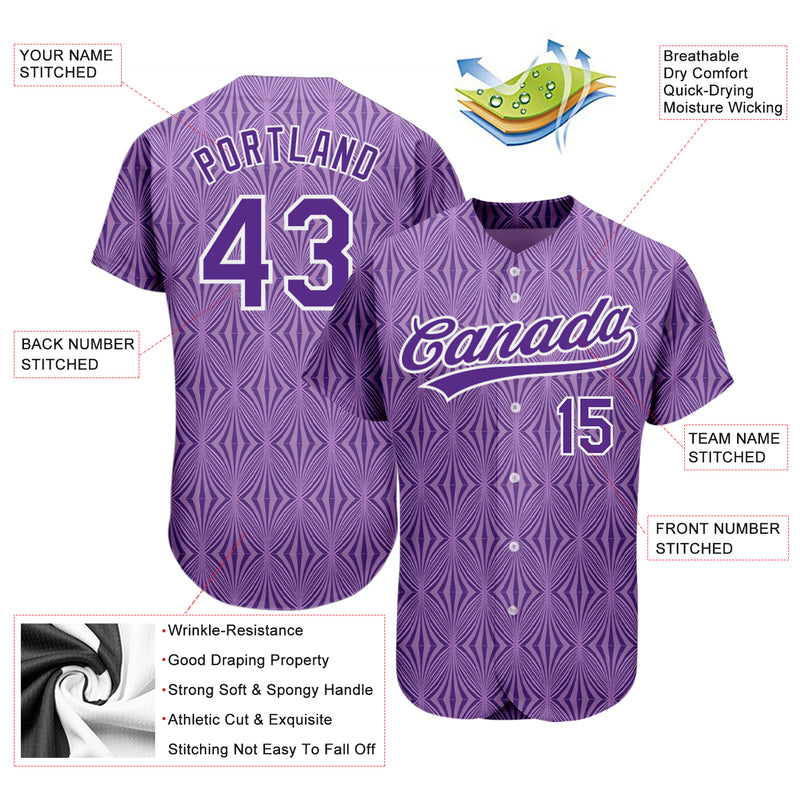 Custom Purple Purple-White 3D Pattern Design Authentic Baseball Jersey
