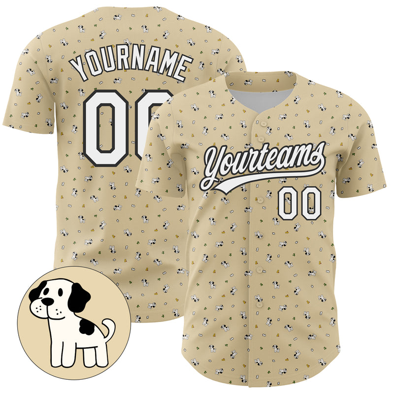 Custom Cream White-Black 3D Pattern Design Animal Dog Authentic Baseball Jersey
