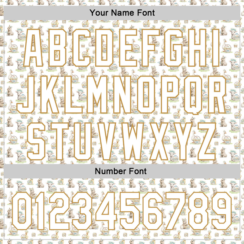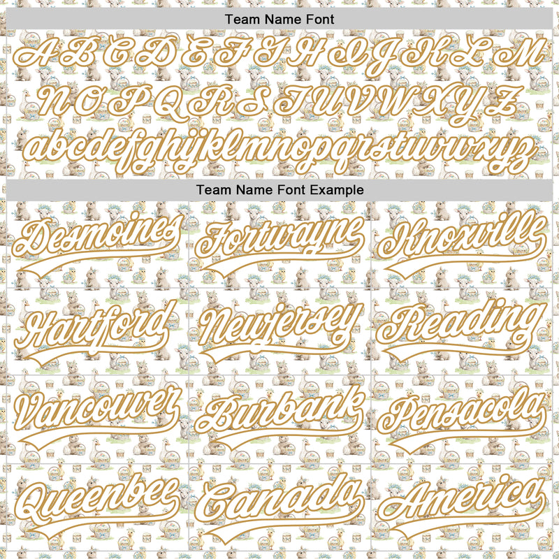 Custom White Old Gold 3D Pattern Design Animal Rabbit Sheep Chicken And Duck Authentic Baseball Jersey