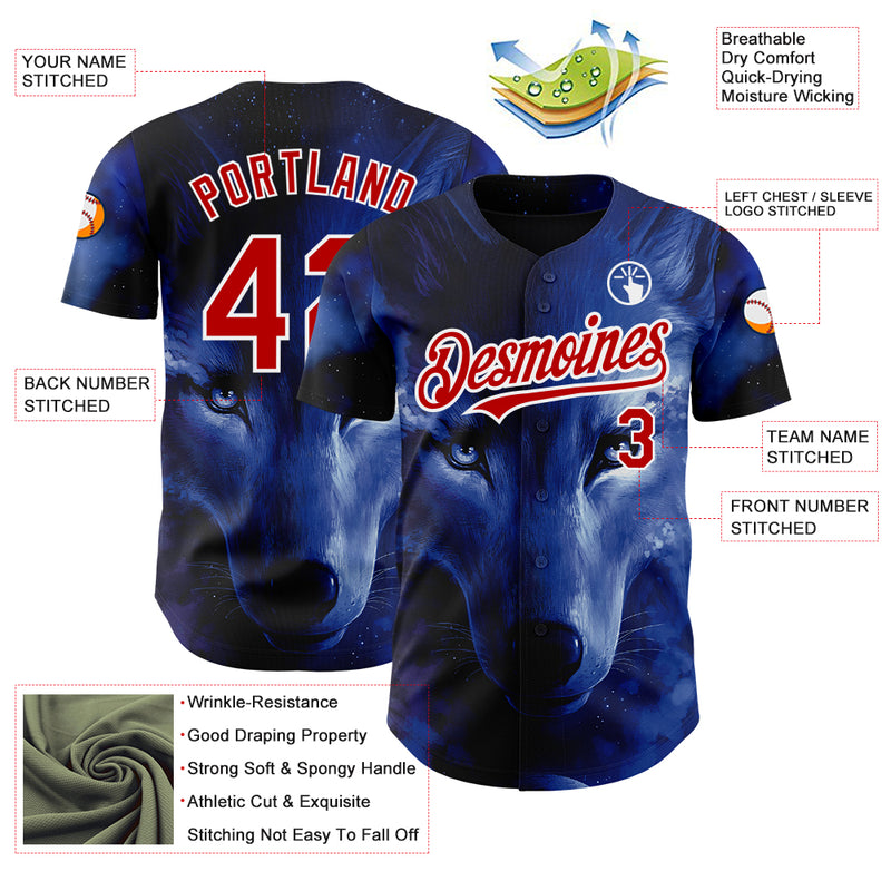 Custom Black Red-White 3D Pattern Design Animal Wolf Authentic Baseball Jersey