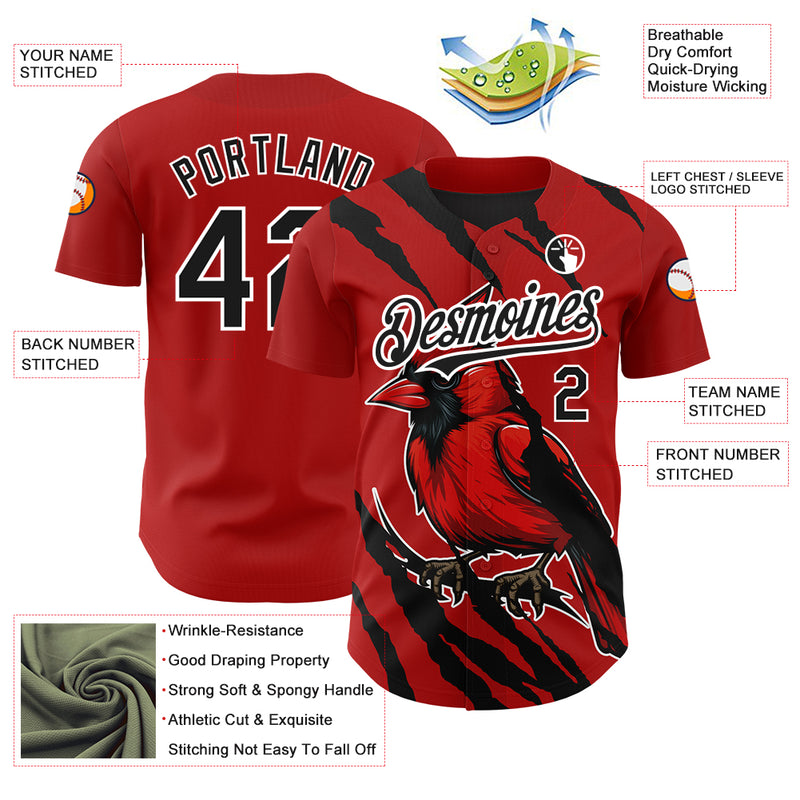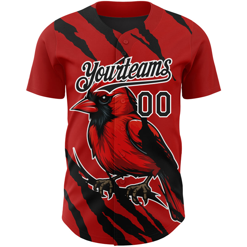 Custom Red Black-White 3D Pattern Design Animal Cardinal Bird Authentic Baseball Jersey