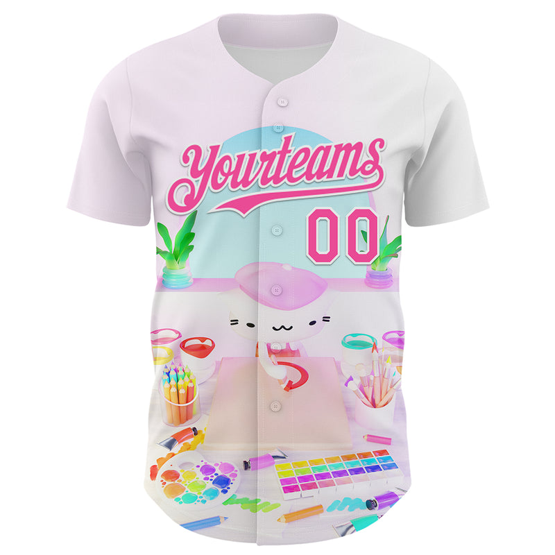Custom Light Pink Pink-White 3D Cindy Suen Artist Authentic Baseball Jersey