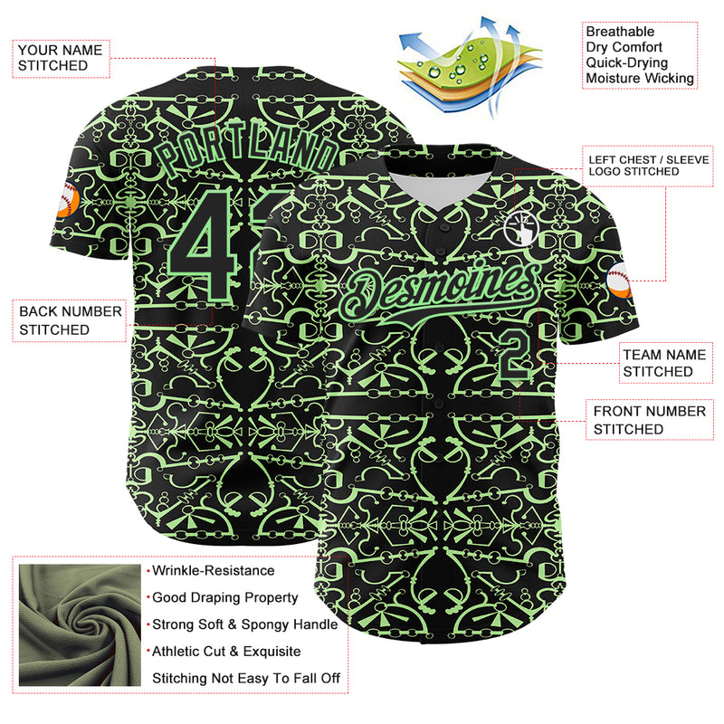 Custom Black Pea Green 3D KYLMAX HUBTUHAN Authentic Baseball Jersey