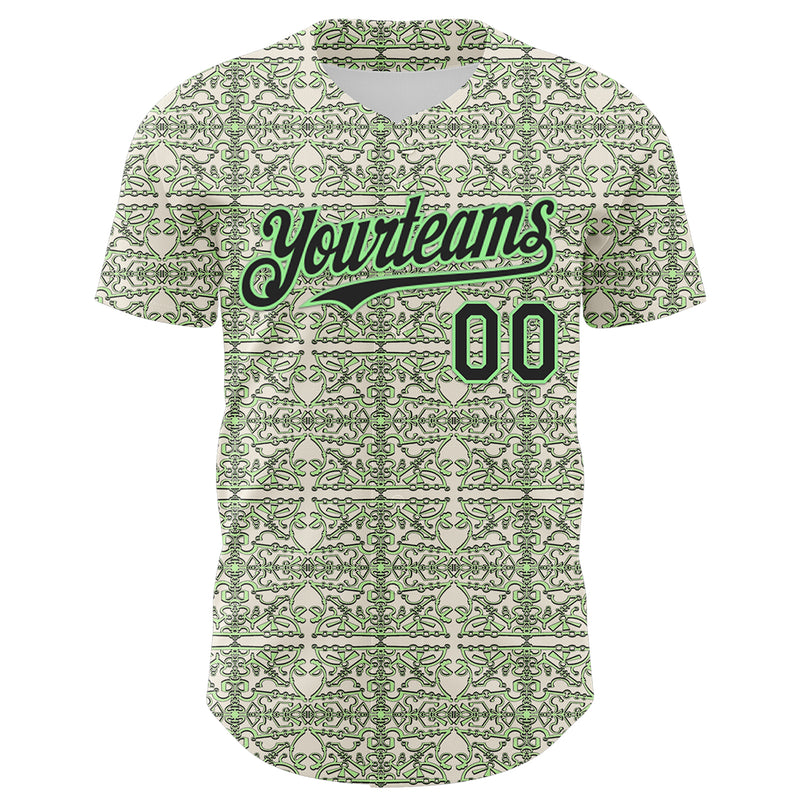 Custom Cream Black-Pea Green 3D KYLMAX HUBTUHAN Authentic Baseball Jersey