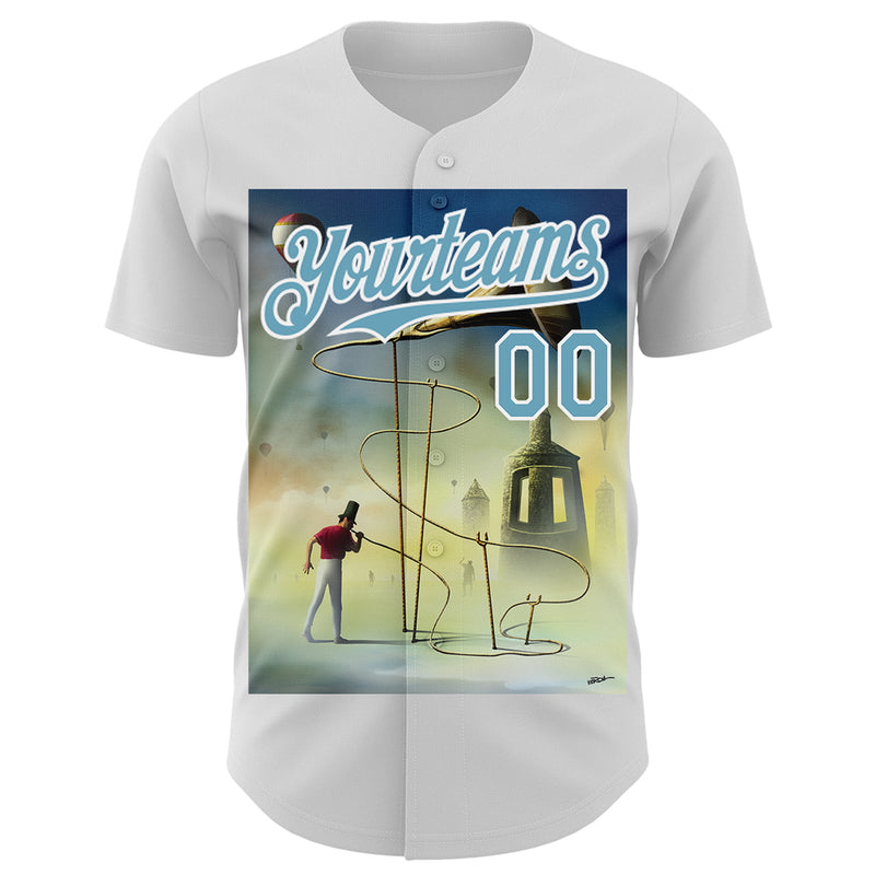 Custom White Shadow Blue 3D Marcel Caram The Horn Authentic Baseball Jersey