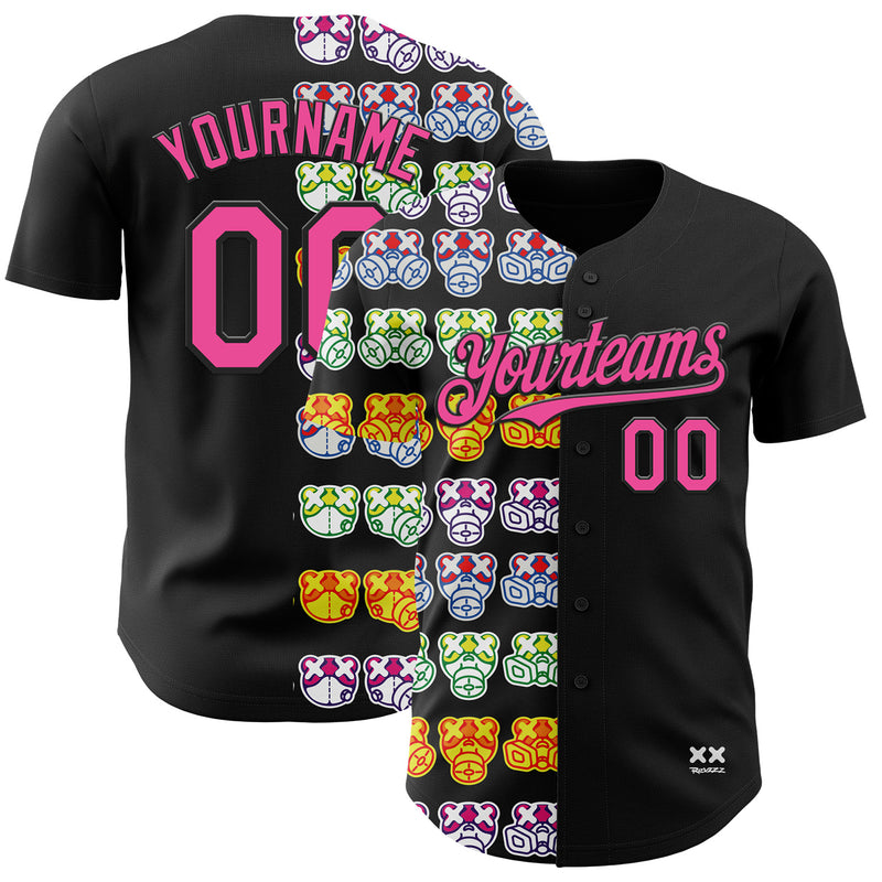 Custom Black Pink 3D Revzzz Half Masked Authentic Baseball Jersey