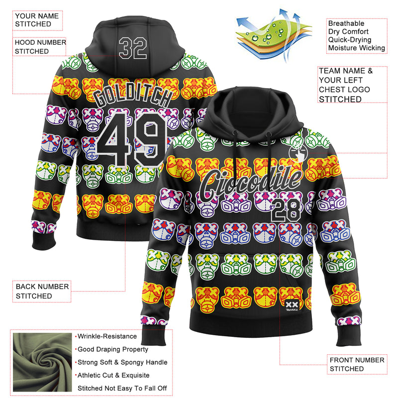 Custom Stitched Black White 3D Revzzz All Masked Sports Pullover Sweatshirt Hoodie