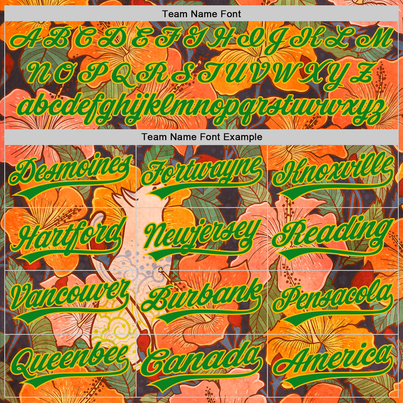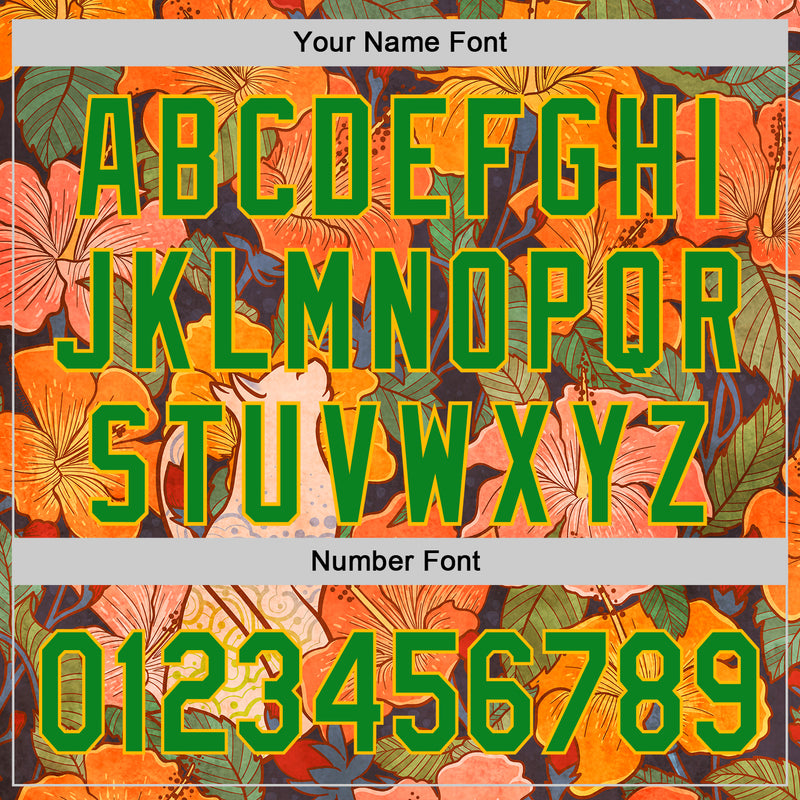 Custom Orange Grass Green-Gold 3D Syntetyc Cat And Hibiscus Authentic Baseball Jersey