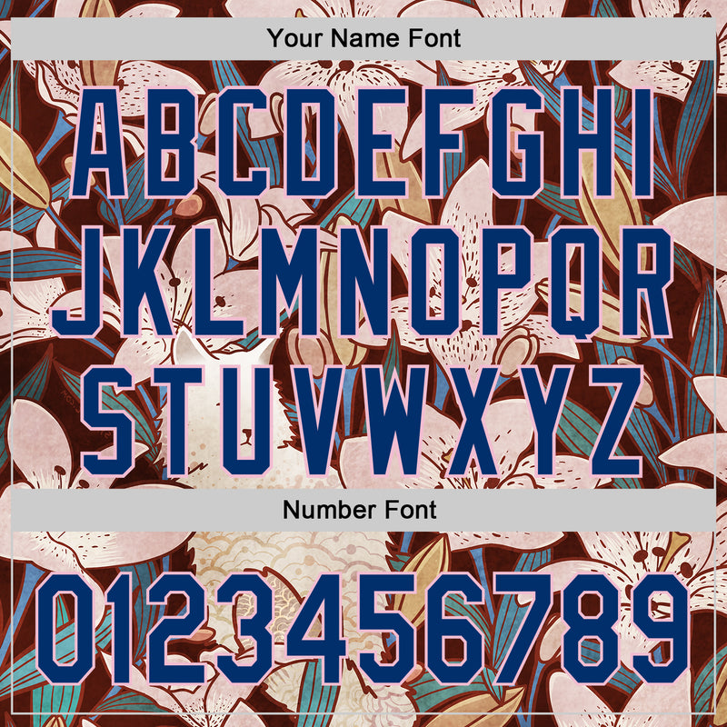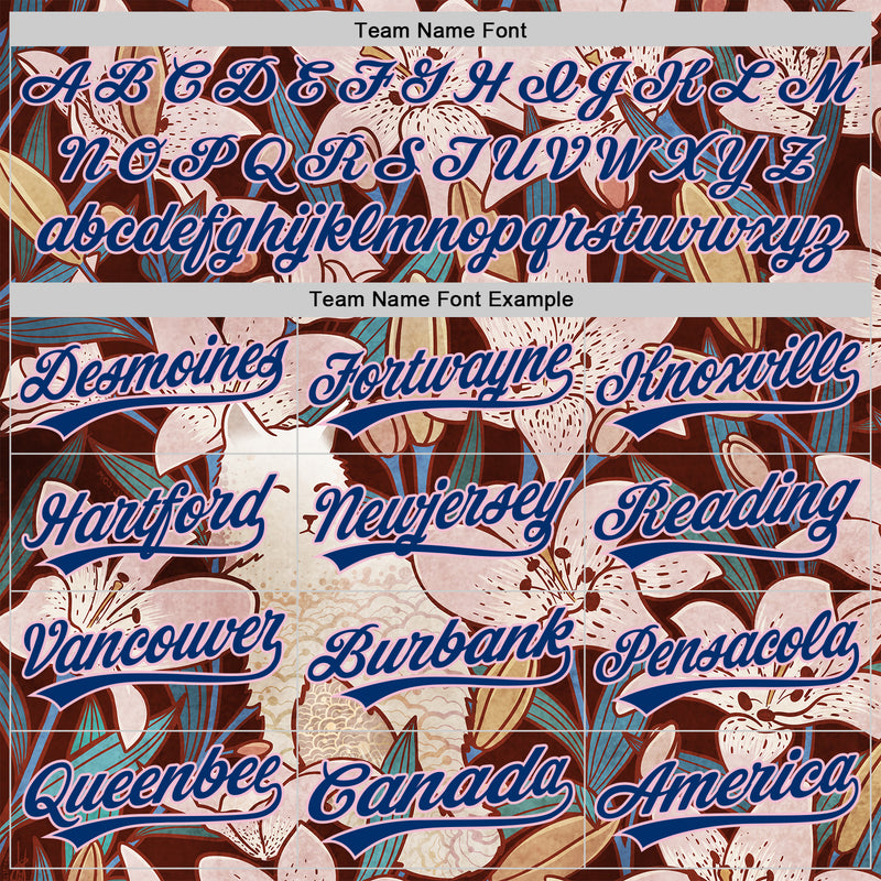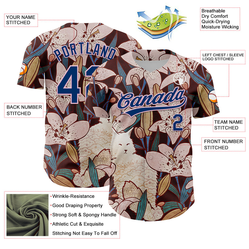 Custom Brown US Navy Blue-Light Pink 3D Syntetyc Cat And Lilies Authentic Baseball Jersey