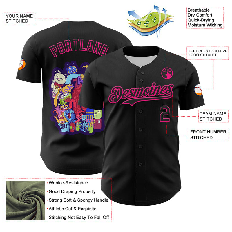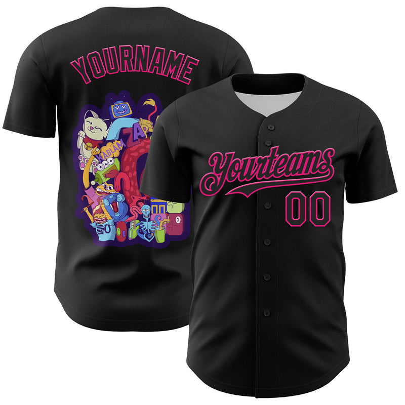 Custom Black Hot Pink 3D Vaunsart Messy Party Authentic Baseball Jersey