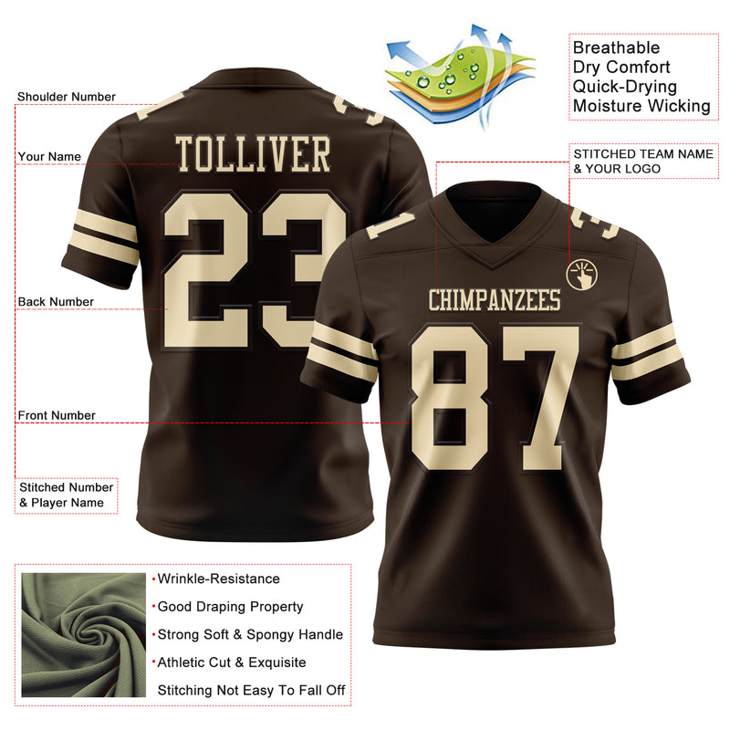 Custom Brown Cream Authentic Football Jersey
