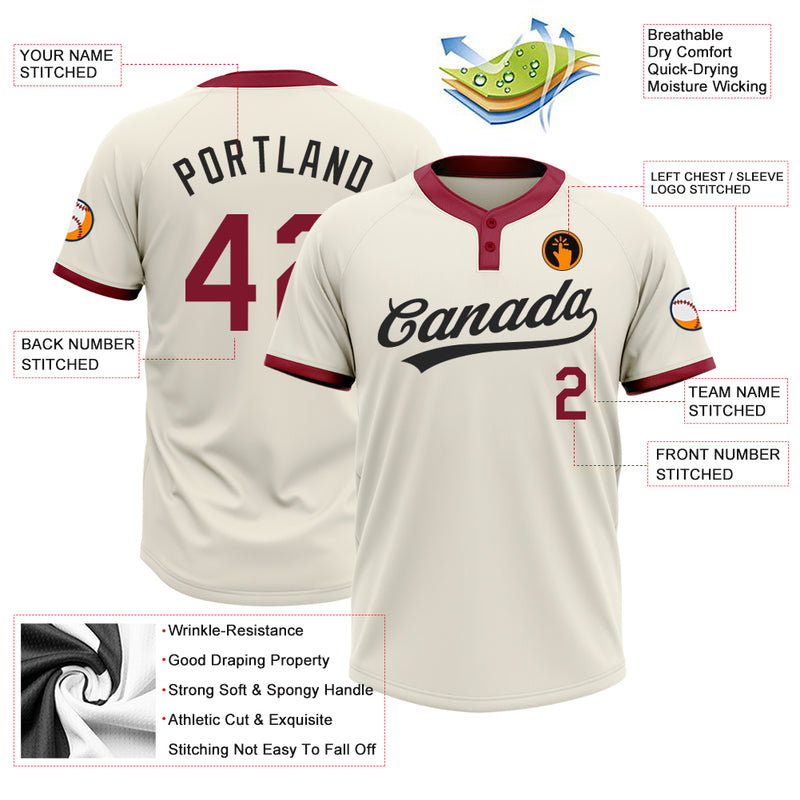 Custom Cream Crimson-Black Two-Button Unisex Softball Jersey