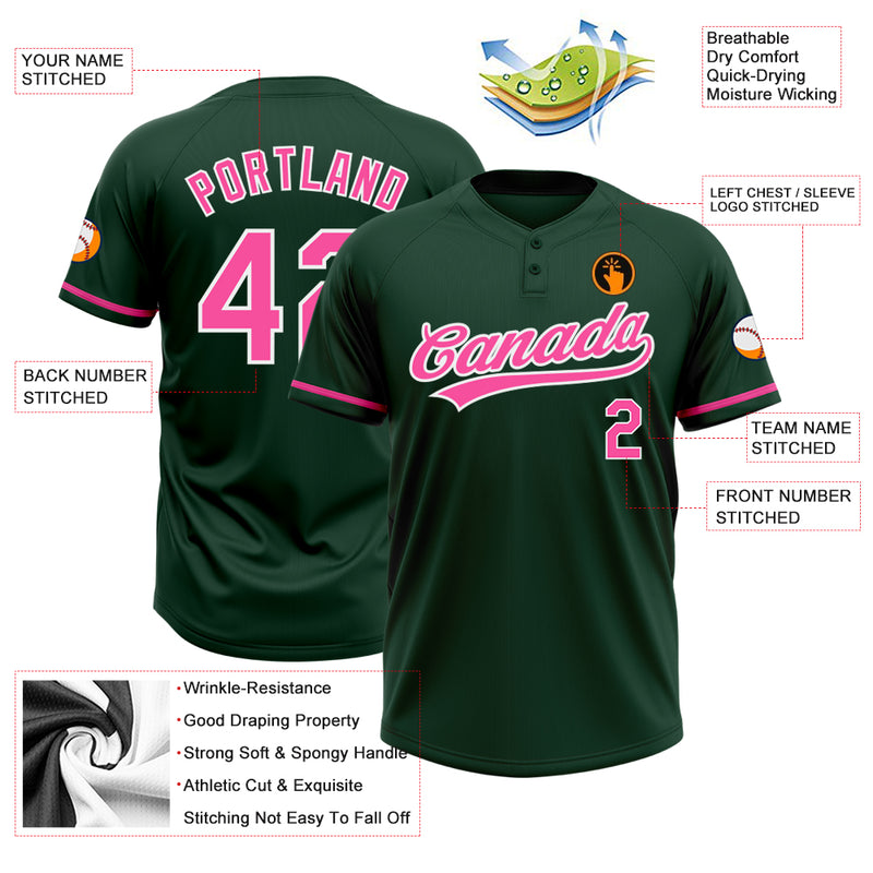 Custom Green Pink-White Two-Button Unisex Softball Jersey