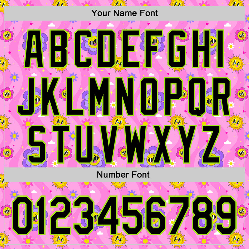Custom Pink Black-Neon Green 3D Pattern Design Funny Cartoon Flower And Sun Authentic Baseball Jersey
