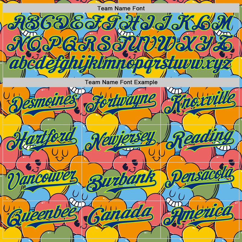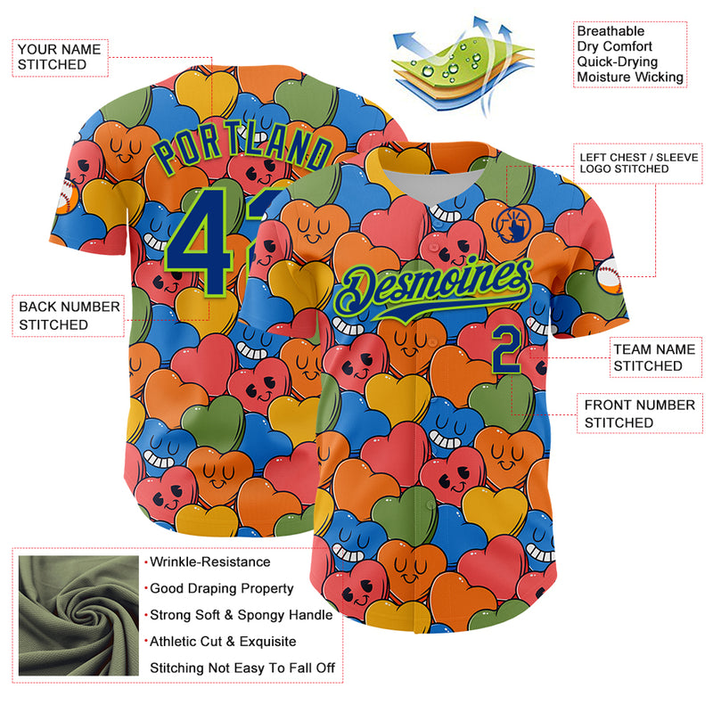Custom White Royal-Neon Green 3D Pattern Design Funny Cartoon Heart Authentic Baseball Jersey