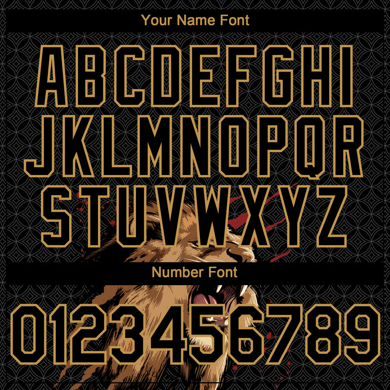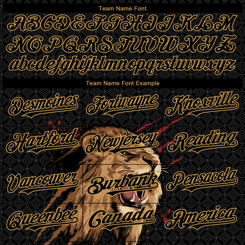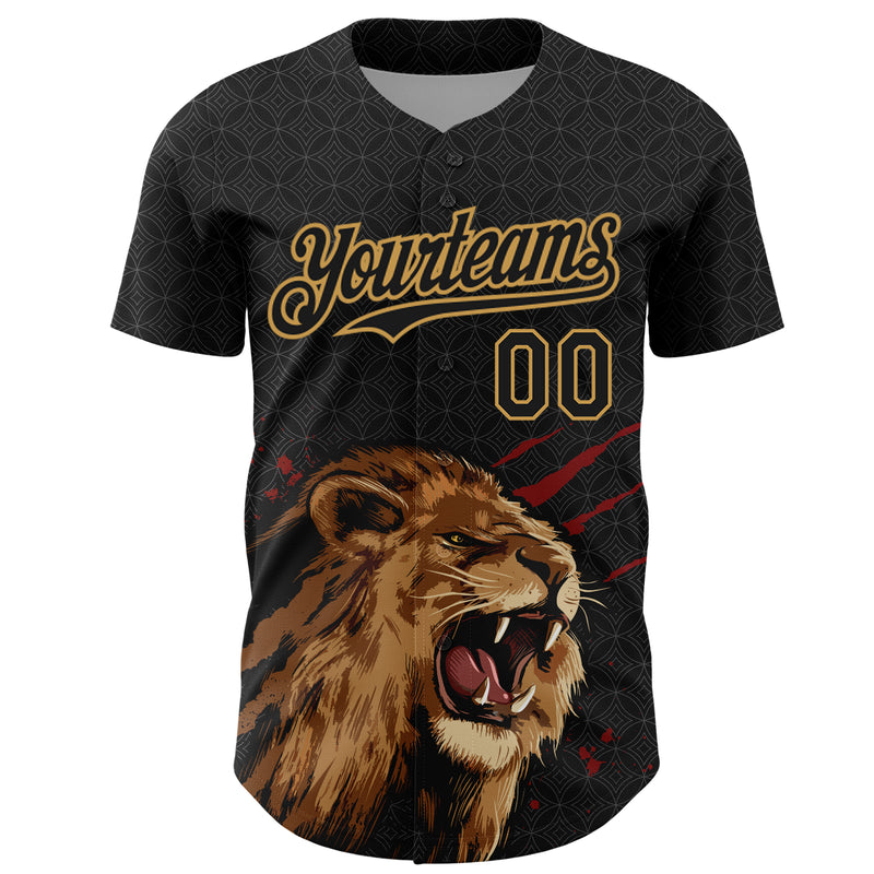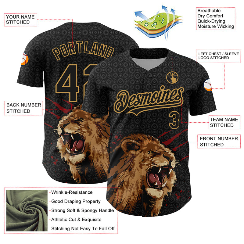 Custom Black Old Gold 3D Pattern Design Animal Lion Authentic Baseball Jersey