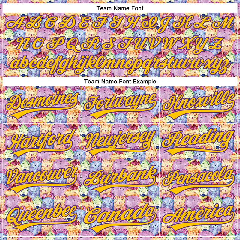 Custom Pink Yellow-Purple 3D Pattern Design Animal Funny Monster Authentic Baseball Jersey