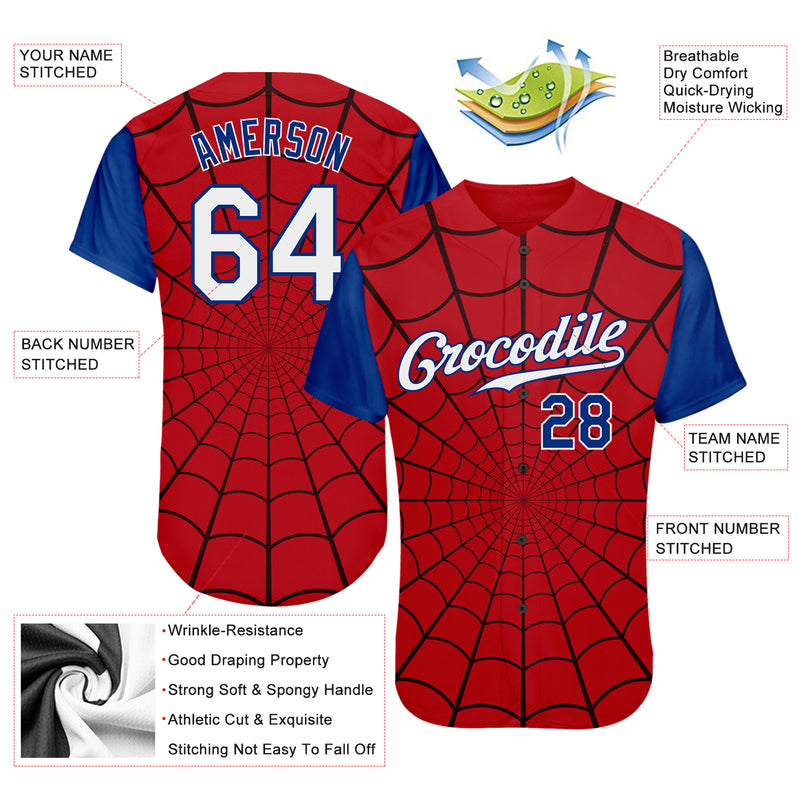 Custom Red White-Royal 3D Pattern Design Spider Web Authentic Baseball Jersey
