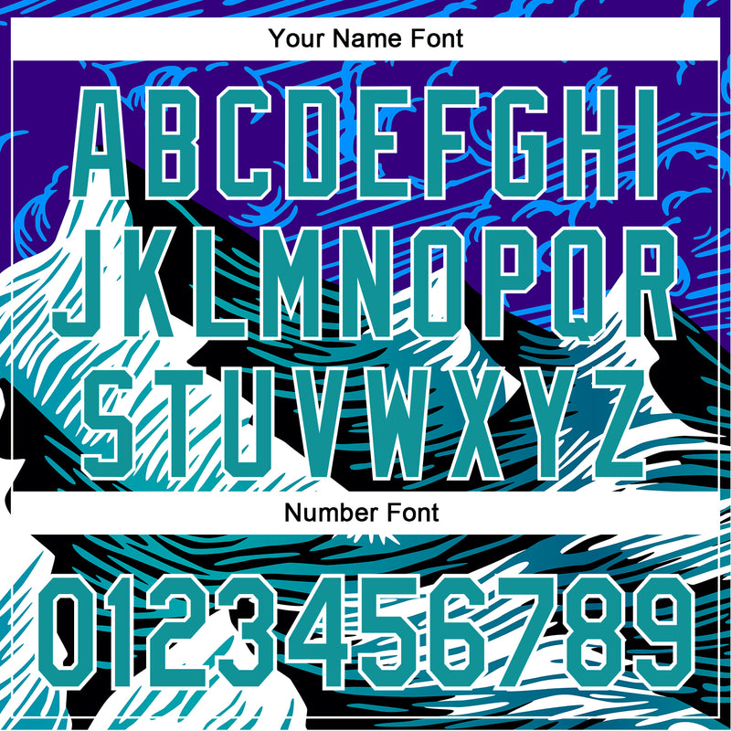 Custom Purple Teal-White 3D Pattern Design Mountains Authentic Baseball Jersey