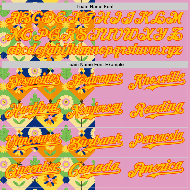 Custom Pink Yellow-Orange 3D Ambartive Abstract Flowers Pattern Authentic Baseball Jersey