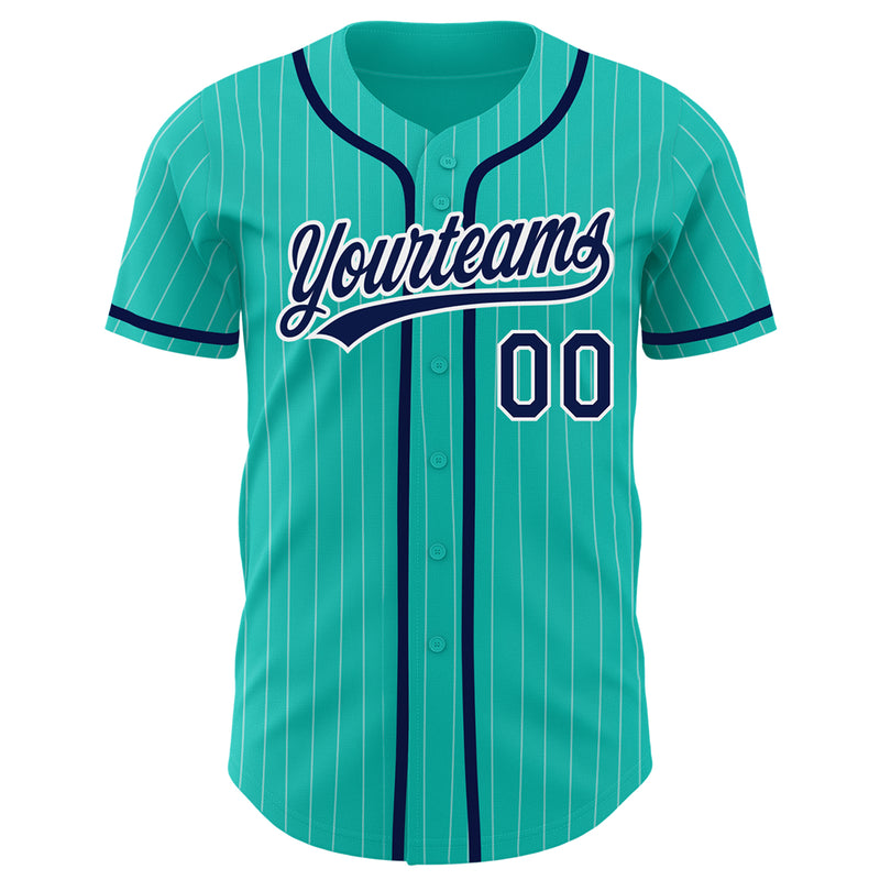 Custom Aqua White Pinstripe Navy Authentic Baseball Jersey