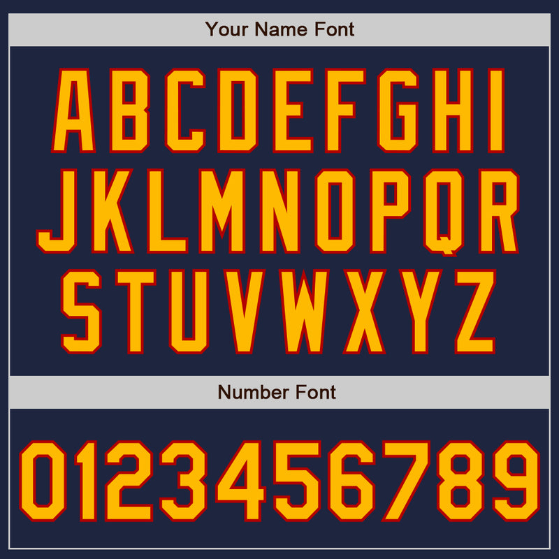 Custom Navy Gold-Red 3 Colors Arm Shapes Authentic Baseball Jersey