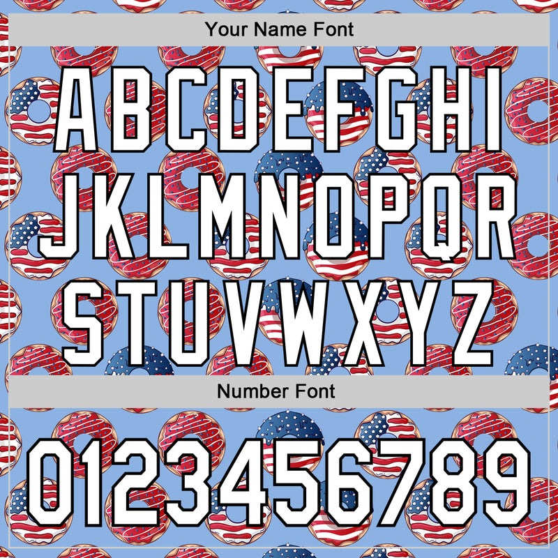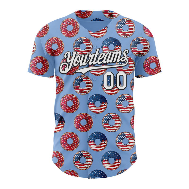 Custom Light Blue White-Black 3D Pattern Design USA Flag Foodie Food Dessert Donut Authentic Baseball Jersey