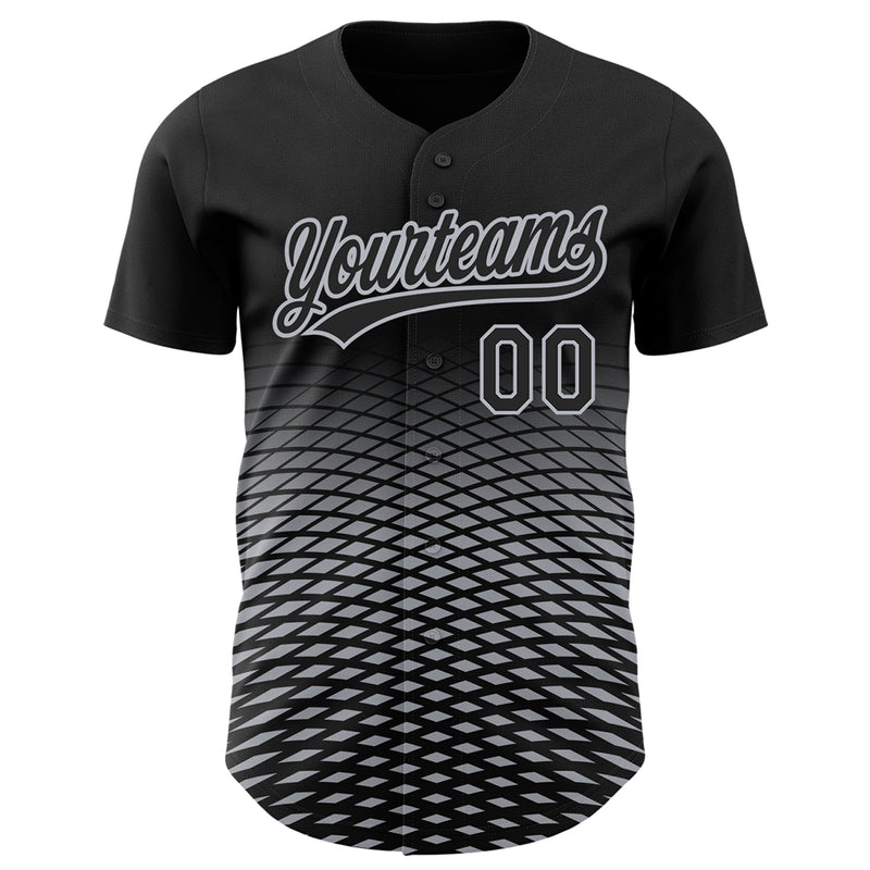 Custom Black Gray 3D Pattern Design Gradient Lines Authentic Baseball Jersey