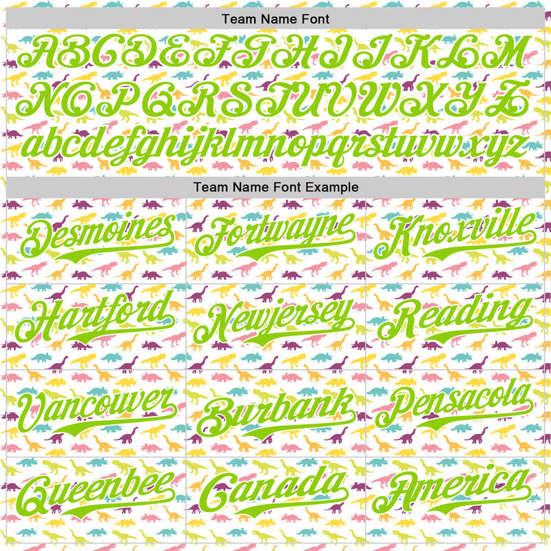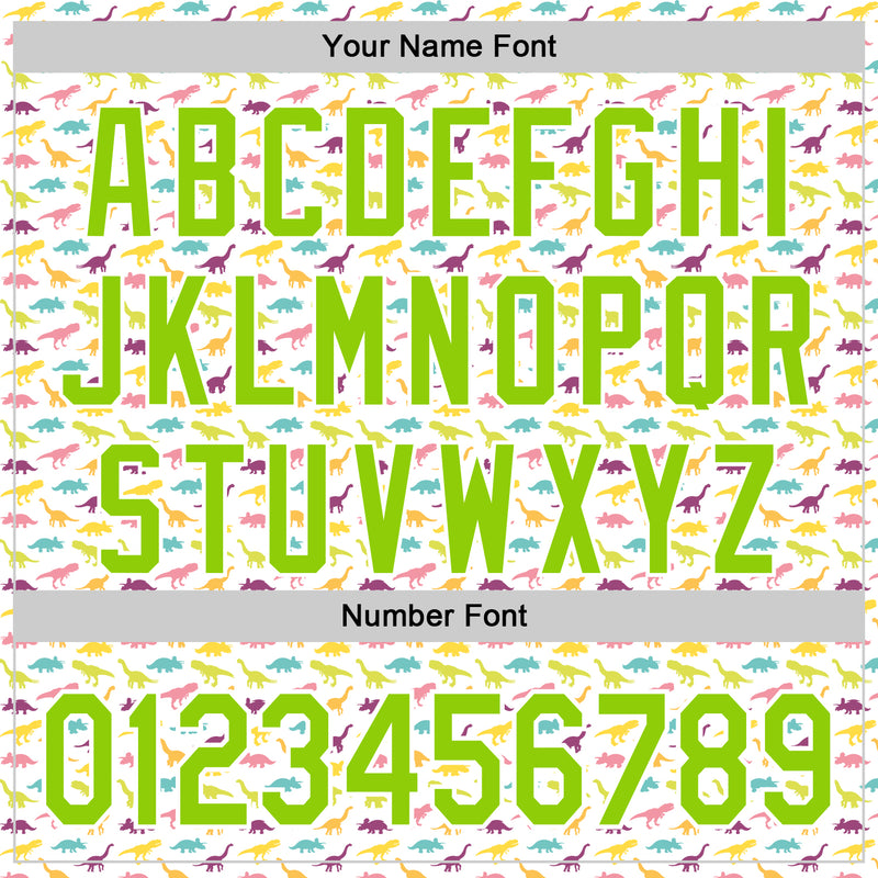 Custom White Neon Green 3D Pattern Design Animal Dinosaur Authentic Baseball Jersey