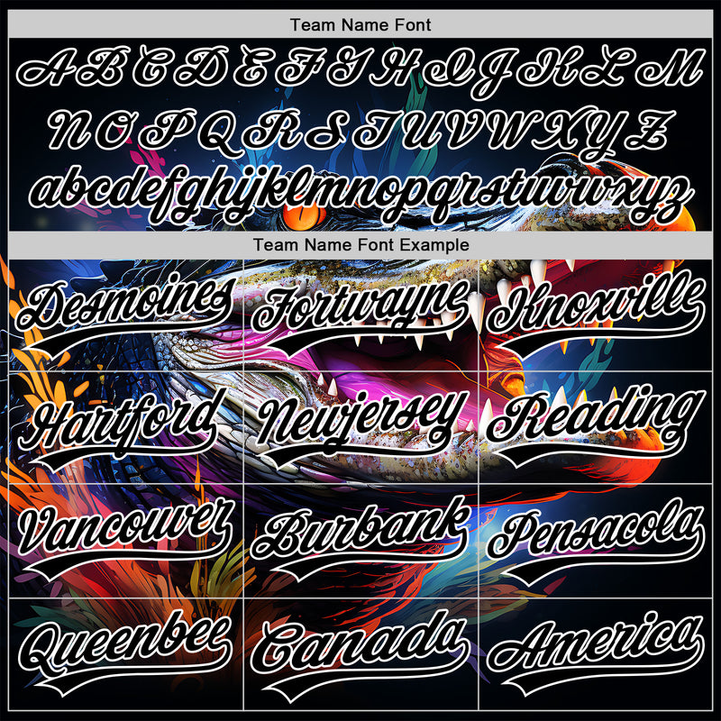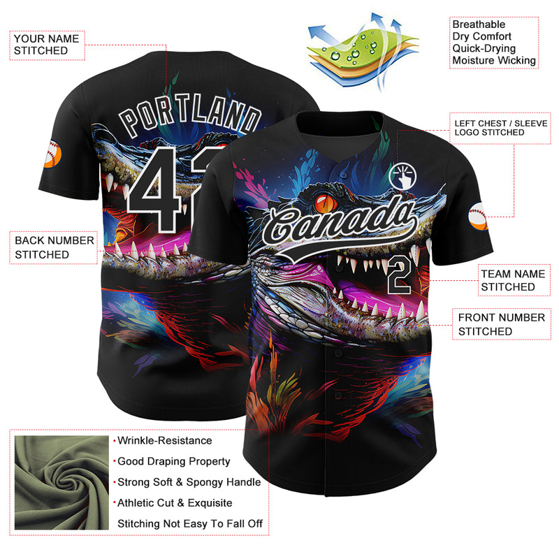 Custom Black White 3D Pattern Design Neon Crocodile Authentic Baseball Jersey