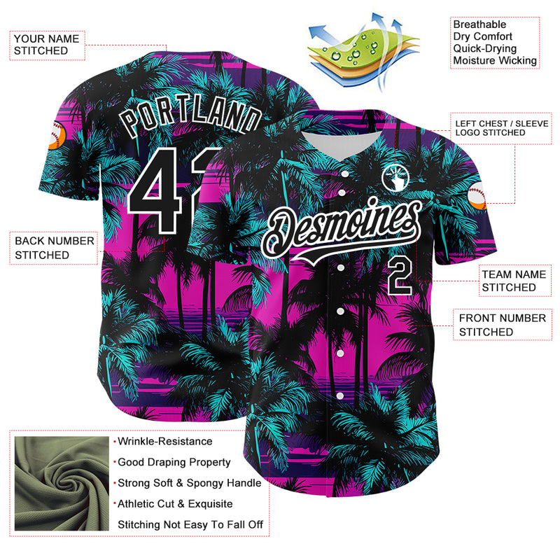 Custom Pink Black-White 3D Pattern Design Beach Hawaii Palm Trees Authentic Baseball Jersey