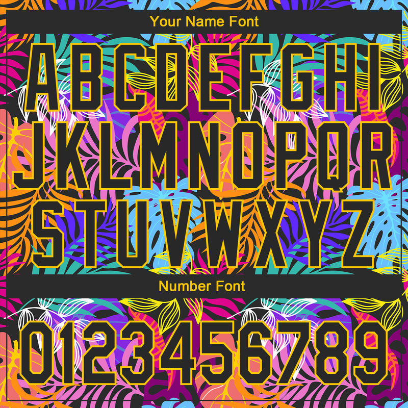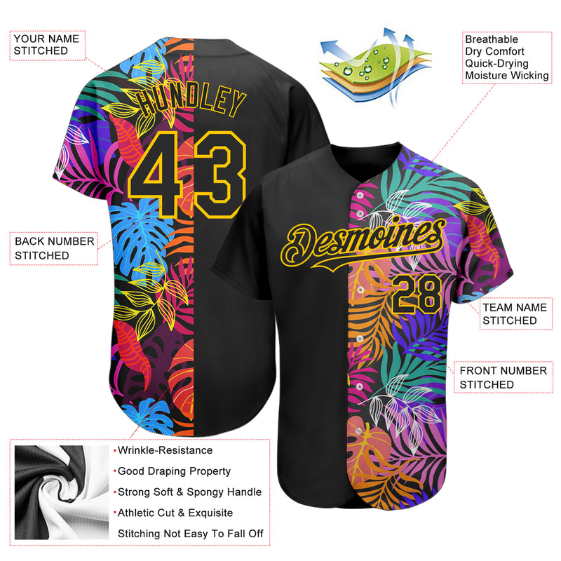 Custom Black Yellow 3D Pattern Design Hawaii Tropical Palm Trees Authentic Baseball Jersey