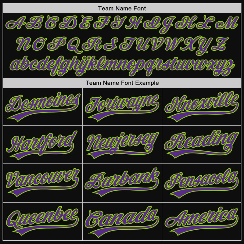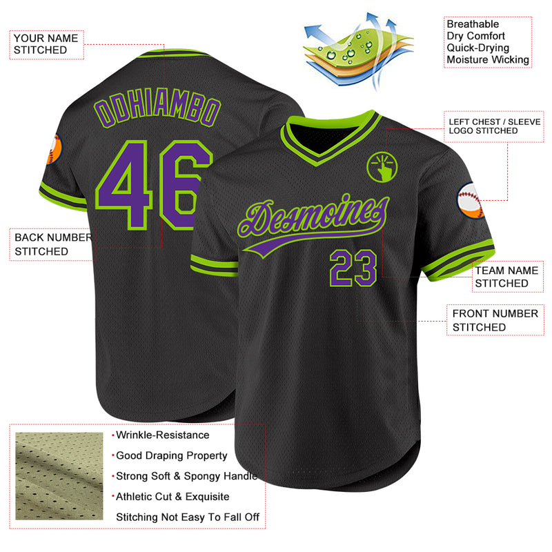 Custom Black Purple-Neon Green Authentic Throwback Baseball Jersey