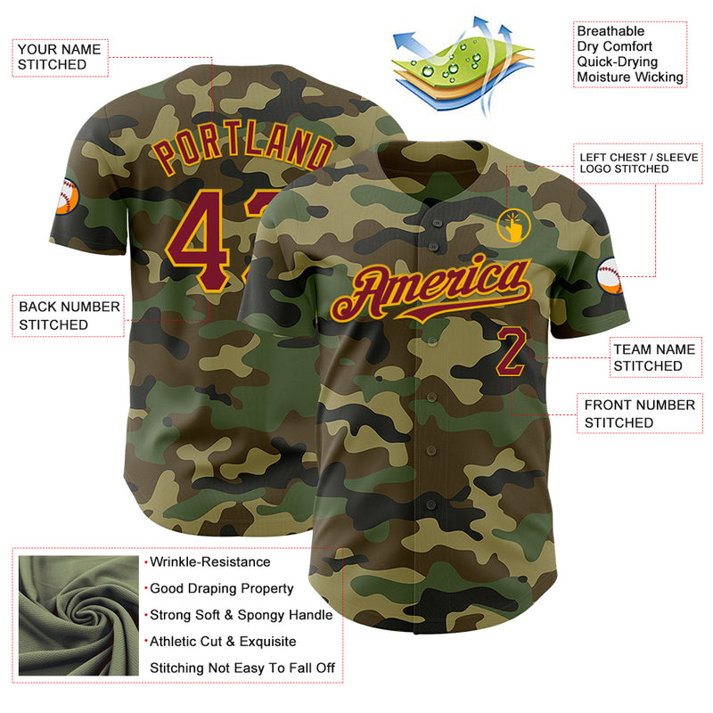 Custom Camo Crimson-Gold Authentic Salute To Service Baseball Jersey